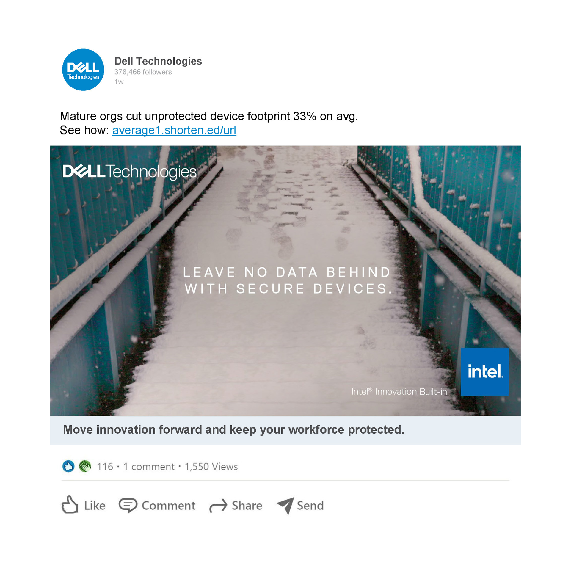 Employees working outside the office can leave sensitive data exposed. Dell’s cyber-secure devices leave nothing behind, like footprints disappearing in fresh snow.