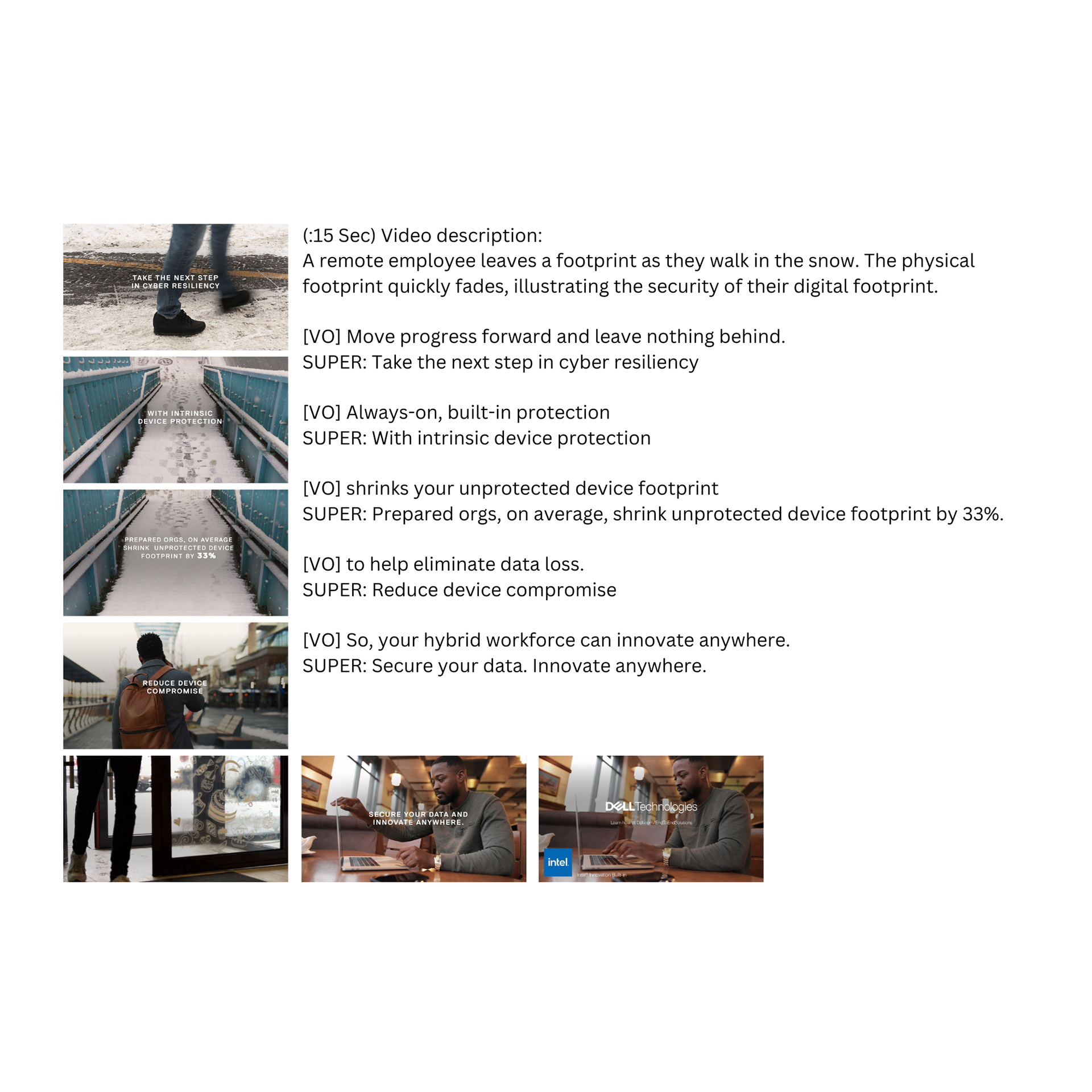 The disappearing footprints illustrate how Dell devices quietly protect sensitive data, so security feels effortless. Every element of this option reinforces the message that information will stay safe anywhere.